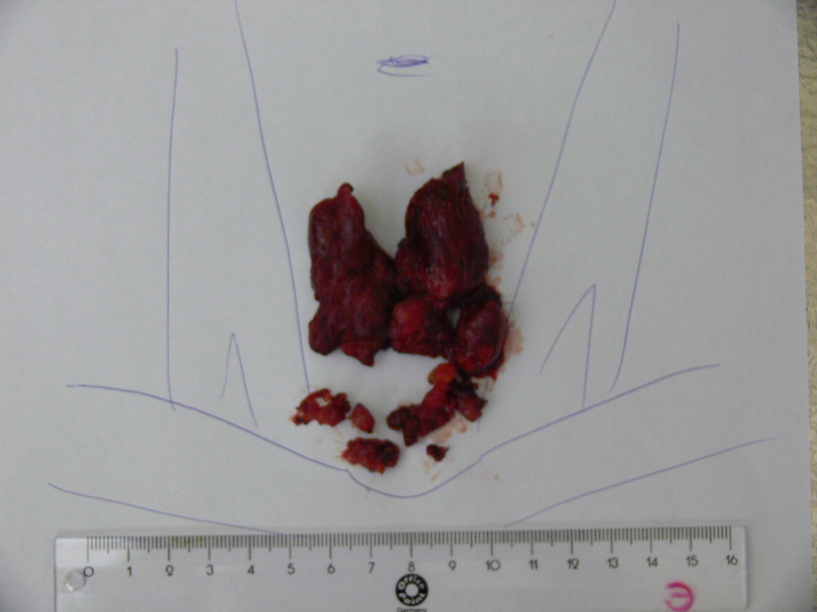 Во время операции выявлены увеличенные лимфатические узлы шеи VI уровня.