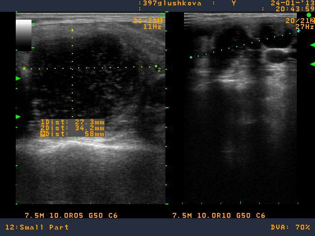 Несколько лет назад у пациентки была выполнена операция по поводу узлового зоба в объеме удаления правой доли щитовидной железы. На контрольном осмотре в поликлинике у пациентки выявлен узел в оставшейся доле щитовидной железы размерами до 30 мм. Эндокринологом поликлиники рекомендована биопсия узла правой доли щитовидной железы.