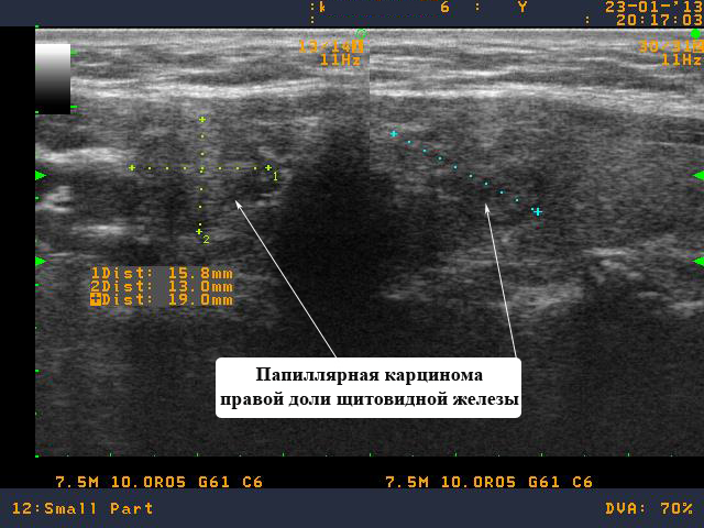 узла правой доли щитовидной железы под контролем УЗИ. В условиях медицинского центра была выполнена