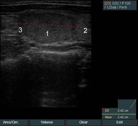 1. Узел щитовидной железы - Размер узла 1,9 на 1,2 на 2,4 см.