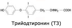 - трийодтиронин (Т3), в своем составе имеет три атома йода (I);